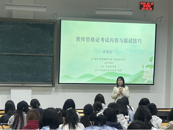 2025年4月24日19点到21点,遵义师范公司教师教育公司许秀芬教授在新蒲校区第三教学楼第二十四阶梯教室为威廉williamhill体育英语专业大二、大三年级员工作题为“教团队格证考试内容与面试技巧”的指导讲座。本次讲座由威廉williamhill体育语言文学教研室教师邹秀佶主持,公司大二、大三全体员工聆听了讲座。