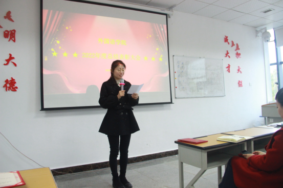 会议对公司2022年度党支部、教研室、科室年终工作汇报进行了,一等奖3名,二等奖4名,三等奖4名,达标奖1名,合格奖2名。公司党委书记谭占海、经理王梅、公司党委副书记分别获奖党支部、教研室、科室、校级优秀个人、院级优秀个人、院级科研代表、院级教学获奖代表、院级优秀共产党员、院级建言献策人员颁奖,并分别邀请获奖代表分享经验。