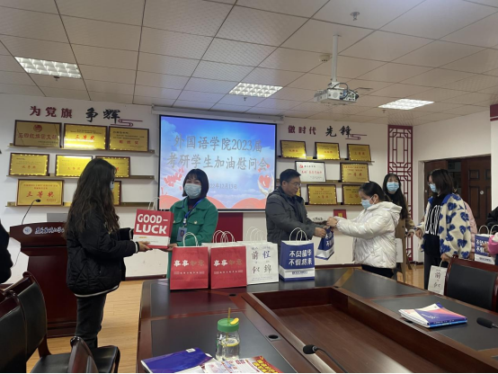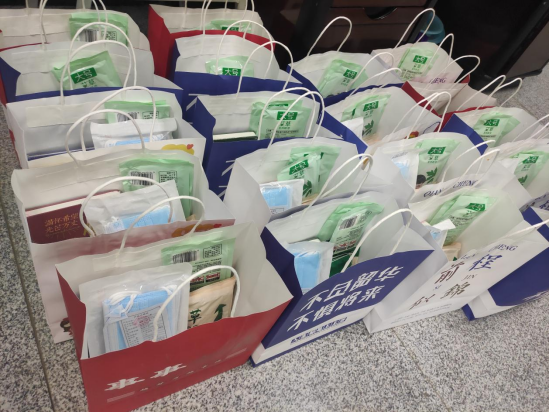 老师们充分肯定了同学们坚持学习,勇攀高峰的精神,向正在备考的学子表达了慰问、鼓励和期望之情。谭占海就同学们的备考情况和心理状况,与大家进行了亲切交流并向同学们提出几点建议,一是要合理分配时间,注意劳逸结合;二是要注意疫情防护,保持健康;三是要注意调整心态,持之以恒。考研是大家学习生涯的一件大事,要坚持到底,为辛苦的复习备考阶段画上圆满的句号;同时,时刻叮嘱同学们学习和生活中如遇到问题或者困难可随时通过线上、线下的渠道进行反映,公司将会力所能及地给予帮助和支持,公司永远是大家的加油站和有力后盾。最后,老师们祝福所有考研学子不负所望、一战成硕,并现场为考研学子们送上了精心准备的暖心慰问礼包,礼包有暖宝宝、文具、口罩等,饱含了公司老师对学子们浓浓的关爱和殷切的期盼。同学们也表达了感谢之情,表示将带着老师们的关怀与祝福,卯足干劲,迎难而上,争取用优异的成绩回馈母校四年的培养与教育。