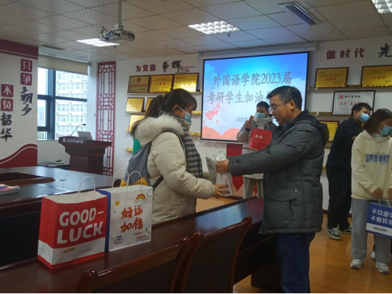 为了帮助考研学子缓解备考压力,鼓舞考研士气,坚定考研信心,2022年12月13日15:50,公司党委书记谭占海带领着员工党支部书记兼毕业生辅导员、教师兼职班主任亲切慰问了2023届22名在校考研复习的员工。