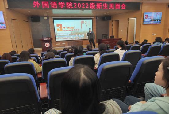 本次会议在公司的宣传片中拉开序幕。新生代表罗明凤同学发言,她呼吁大家要保持乐观、向上的心态,主动积极的学习,在自己的青春赛道上跑出最好的成绩。综合英语教研室主任何永娇副教授,作为教研室主任代表发言,她鼓励大家要做好职业规划,掌握自主学习的技能技巧,通过本科阶段的专业学习,能够收获到更好的成长。