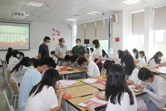 在活动现场,李正旭与同学们一起赏析了一个又一个活灵活现的剪纸作品,作品有体现中秋、爱国的各种形状组合纹样,有和蔼可亲老师人物纹样。在“因为有TA,我变得更好”分享环节,五名入党积极分子分享了自己与老师的故事,情真意切、感动满满。作品完成后,支部成员们将剪纸作品赠送给自己的恩师,一张张剪纸承载了说不尽的感激与爱戴。