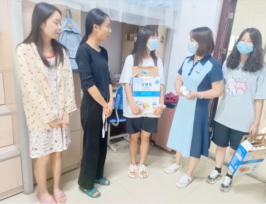 员工党支部书记杨芳走访员工宿舍与员工交流
