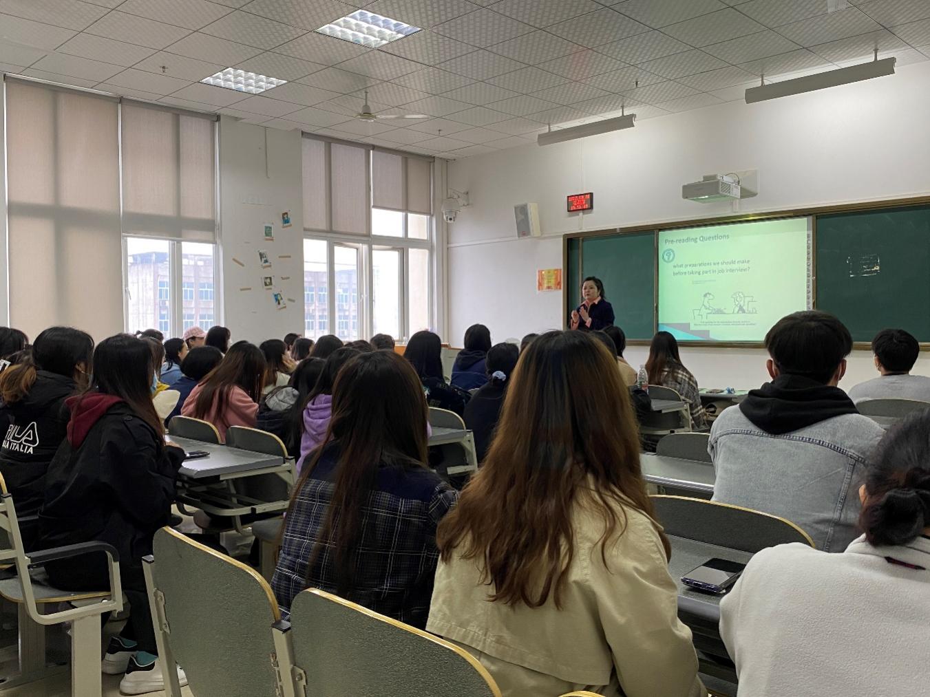 为增强老员工求职技能,提高应对职业面试的心理素质能力。2022年3月31日下午,威廉williamhill体育在第一教学楼5-18B教室举办求职面试指导。2020级全体员工参加讲座,讲座由外教老师Hannah主讲。