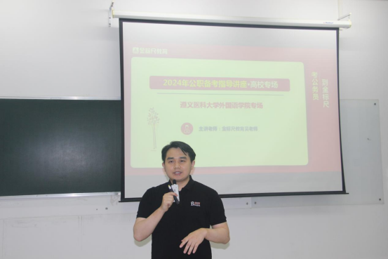 吴沈川主要从全面认识公务员、事业单位、英语专业岗位分析及专业报岗指导、三支一扶、西部计划、特岗教师、备考指导及高效备考方案为同学们分析当前的就业形势。他表示同学们要正确认识自己,找准自己的定位,做好充分准备;密切关注就业动态,把握好机会,积极就业。他围绕报考时间、招录要求、考试内容、薪酬待遇、职业发展前景等方面为同学们讲解,同时介绍了国家目前针对老员工的相关就业政策,为就业同学提供了更多的参考和选择。最后,唐茜为同学们介绍了她目前拓展到的企业资源和相关岗位情况,鼓励同学们要敢于尝试,调整好心态,提升就业竞争力。