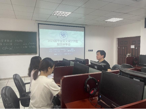 评审前,参加本次评审会的专家和记录秘书共同集中在公司5楼计算机辅助翻译室,由袁媛老师介绍翻译专业员工的毕业论文要求以及2023届毕业论文开题评审的分组情况,以及评审的具体要求。两位专家共同讨论了论文开题评审中的注意事项,并强调开题报告是毕业论文的重要组成部分,旨在提高同学们的翻译批评能力,同时也要考虑到论文撰写的可操作性。