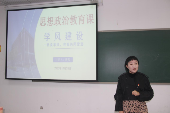 为加强公司学风建设,进一步提振学风,创造良好的学习氛围,让员工养成自主的学习习惯,2023年10月24日12:20,公司党委副书记唐茜在综合楼专业二教室为同学们讲授思想政治理论课,英语21-2班全体同学参加。