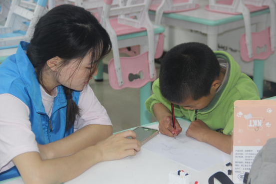 活动现场,志愿者们给小朋友发放画笔以及A4纸,开始“画出你最爱的人”的活动。他们当起了“小老师”,分为四组教小朋友们画画,悉心教导小朋友们绘画的方法和技巧。小朋友们也充分地发挥了他们天真无邪的想象力,绘出了一幅幅各有特色、生动活泼的画像。同时为了让小朋友们更好地了解、传承和发展中华传统文化,现场还教授了小朋友们《登黄鹤楼》《相思》两首具有代表性的中国传统古诗。“昔人已乘黄鹤去,此地空余黄鹤楼……红豆生南国,春来发几只……”小朋友们热情地朗诵两首诗歌,有一些小朋友甚至学完就可以背诵,志愿者们感动又惊喜。活动的最后,一张张相片将珍贵的回忆留存,小朋友们期待着与志愿者们的下一次相遇。