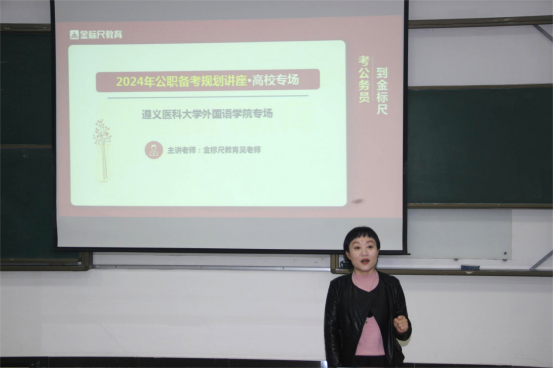 为助力公司员工全面了解选调、国省考及事业单位招考政策,将就业指导前移,2023年10月20日16:00,威廉williamhill体育邀请贵州金标尺优众教育咨询有限公司教研负责人吴沈川在第二教学楼第十四阶梯教室举办公职备考规划讲座。讲座由公司党委副书记唐茜主持,2020级在遵实习员工、2021级共120多名员工参加培训。