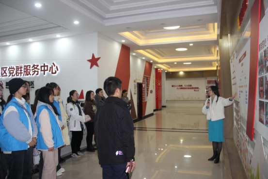 刘福娟带领青年员工们一起学习宣传贯彻习近平总书记重要讲话精神——《动员引领广大团员在强国建设、民族复兴伟业中挺膺担当的决定》,加强员工们的思想教育,她表示老员工社区实践活动是引导员工走出校门、走向社会、培养锻炼才干的好渠道。红星社区党总支部副书记李易易也与同学们分享了自己毕业通过西部计划进入社区工作的经历,鼓励青年学子参与到社区工作中来。活动现场,讲解员从“星引擎”激活原动力,建强基层组织、“星讲堂”凝聚正能量,铸牢政治忠诚、“星舞台”弘扬新风尚,营造温馨家园、“星治理”奏响和弦曲,提升管理效能、“星服务”构筑连心桥,共享美好生活等五个方面为员工们介绍了红星社区。作为团中央基层组织改革示范点,他们始终坚持党对城市社区工作的全面领导,同时,在讲解员的带领下,同学们参观了该社区党群服务中心的舞蹈练习室、书法练习室、文化长廊等特色功能区。活动结束,同学们纷纷表示,将积极响应时代号召,学好专业知识,积极投身志愿服务,展现新时代青年风采,在基层绽放绚烂青春之花。