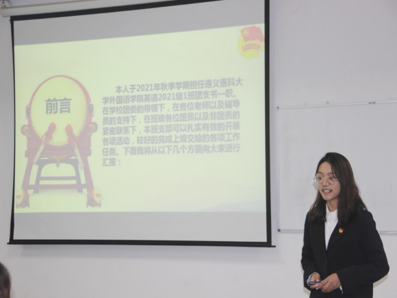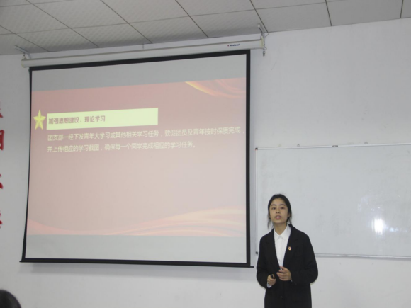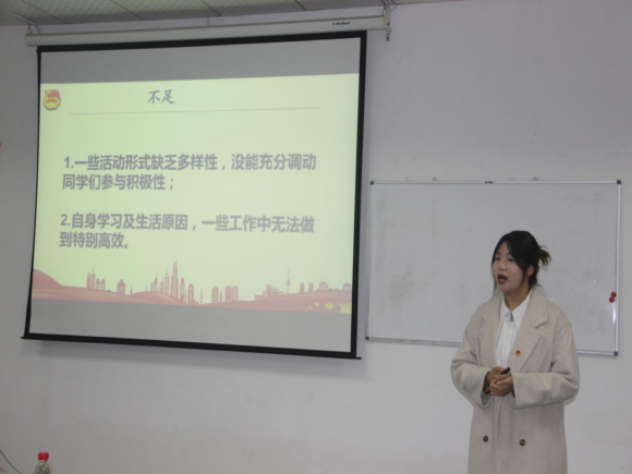 各位团支书围绕团支部班子建设、团员管理、组织生活、制度落实、作用发挥、特色亮点工作、未来规划和展望等七个方面展开汇报。团支书们自信且精神饱满,措辞简单精炼,条理清晰,通过照片、文字展现各团支部青年团员们积极进取、活力向上的青春风貌。述职结束后,刘福娟对团支部的述职情况给予了肯定和表扬,并提出三点要求:一是作为团支书要清楚知道此次述职的目的和意义,各团支书对自己的工作要有一个全面系统的认识,以便于更好地服务于班级;二是要多思考,如何凝聚团支部的向心力,坚持个人发展与班级发展相结合;三是要办实事,不说空话。
