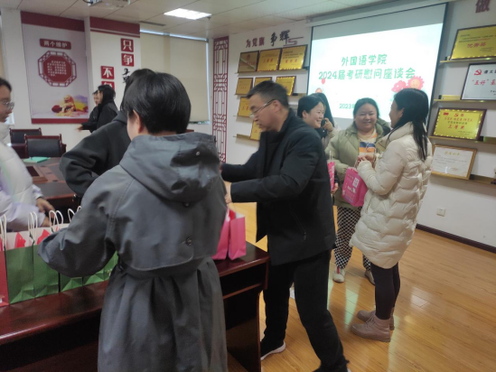 座谈会上,老师们对同学们坚持学习、克服困难、为梦想而不懈奋斗的精神表示充分肯定和高度赞赏,向备考员工表达了慰问,鼓励员工继续坚持、奋勇向前。谭占海与考研员工亲切交流,他叮嘱同学们,一是要保持良好的学习状态,按照既定的安排合理备考,不骄不躁,持续发力,做好最后一公里;二是要劳逸结合,不必刻意加码,保持身心健康,以最好的状态备战考试。王梅提醒同学们注重劳逸结合,提高学习效率,掌握复习技巧和方法,并表示公司将尽全力为大家的考研保驾护航。唐茜鼓励同学们只争朝夕,不负韶华,保持良好心态,注意饮食营养,保持身体健康。会后,公司领导为每一位考研员工分发考研“加油包”,为员工们送上公司的温暖,表达了殷切期望。