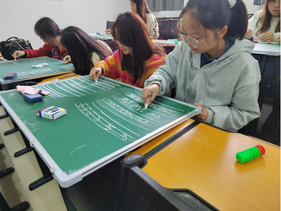 为了提高同学们英语粉笔字书写水平,全面提升教学基本功和就业核心竞争力,2023年11月4-19日,威廉williamhill体育在一号教学楼1-7A教室、第25阶梯教室开设了英语粉笔字板书训练营。训练营邀请了遵义师范公司威廉williamhill体育副教授梁理主讲,公司160名同学参加训练。