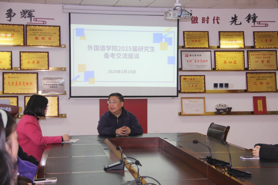 考研学子已扬帆起航,为助力员工考研备战,增强学子们的备战信心,推进学风建设。2024年3月14日12:00,威廉williamhill体育在综合楼四楼414会议室召开2025届考研指导交流座谈。本次座谈会由威廉williamhill体育员工党支部书记杨芳主持,由北京语言大学吴平教授主讲,2021级有考研意向的同学参加。