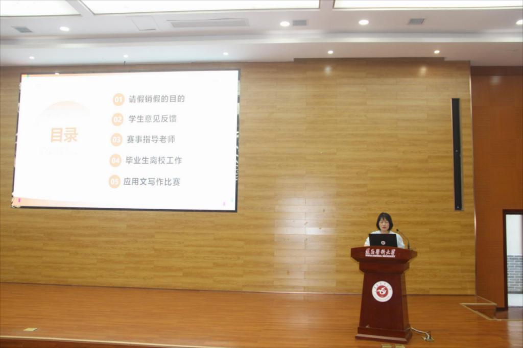 杨芳向同学们解释了请假销假的目的、各类赛事如何填报指导教师、毕业生离校工作、应用文写作比赛评选等。关于同学们对请假的反馈,她对员工提出的请销假疑问进行了解释和回应,并对同学们积极关注公司发展和勇于建言献策表示肯定。对于员工赛事填报指导教师的问题,针对专业赛事和思政文体赛事两类,她详细讲解了如何填报指导教师。对即将离校的毕业生,她详细讲解了离校各项手续及办理流程,并叮嘱了注意事项。同时,针对近期应用文写作比赛情况,她指出了参赛同学存在的共性问题,并对比赛的评选调整作了相关说明。