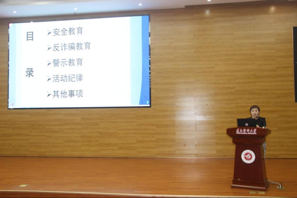 阮佳佳从安全教育、反诈骗教育、警示教育、活动纪律、请销假情况等方面展开讲解。首先,她提醒全体同学要注意交通安全,勿违规使用电动车,注意财产安全,炎热夏天防溺水,重视人身安全。其次,通过一些身边实例,她再次提醒同学们保持警惕,防诈反骗;通报了近期有损老员工形象、有悖社会公序良俗的违纪情况,近期员工违规私自更换床位的违纪情况。最后,她总结了近期活动中存在不守时、不认真、不积极等问题,重申了活动纪律。针对近期病假频繁,阮佳佳提醒同学们要加强锻炼、保养身体、注重饮食卫生。
